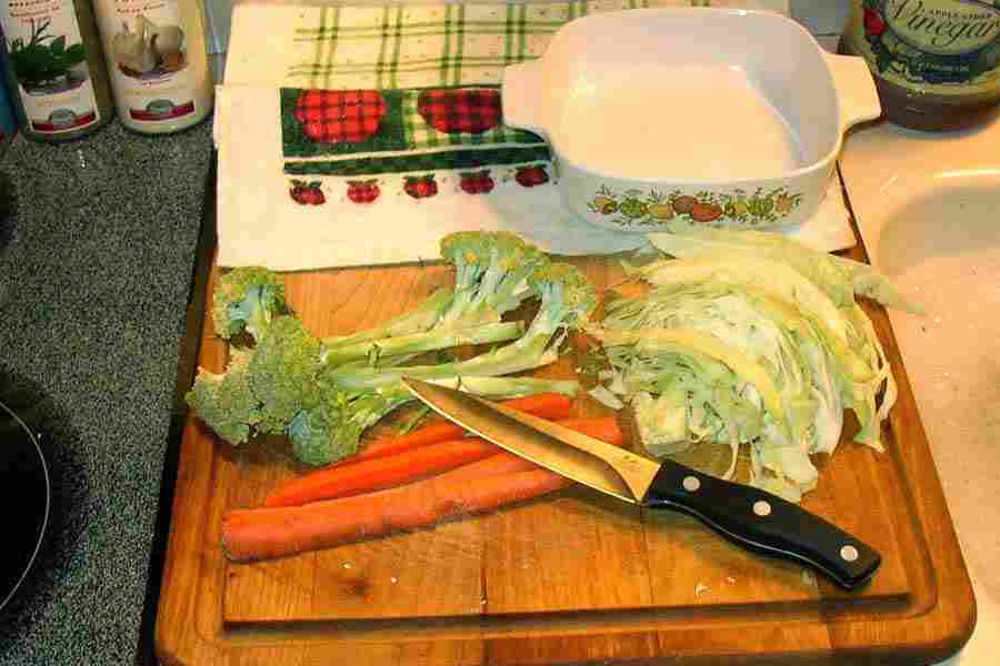 & broccoli stems, chopped cabbage & sliced broccoli tops for 7 1/2