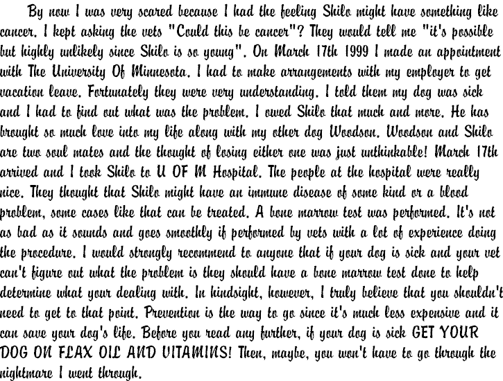 Shilo's Tale | Jesse's Story | Misty's Journey | Niki's Odyssey | Doggie Dinner | CRF Canine Renal Failure | Vaccinosis Story